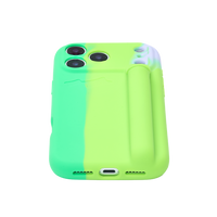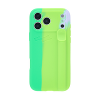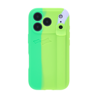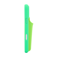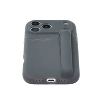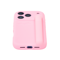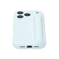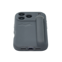100% silicone phone case with a soft matte finish, debossed logo and integrated multi-use holder with a rotating top closure. Includes an interior tab for cleaning.